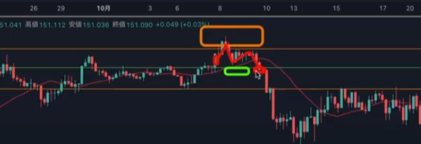 -買い支え・売り抑え 止まりやすいが新たに波が出るかどうか不明。抜けたら方向が変わるところ - 勢い