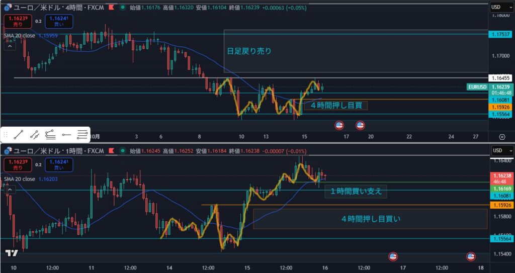 - 4時間戻り売りエリアから少し下げて停滞