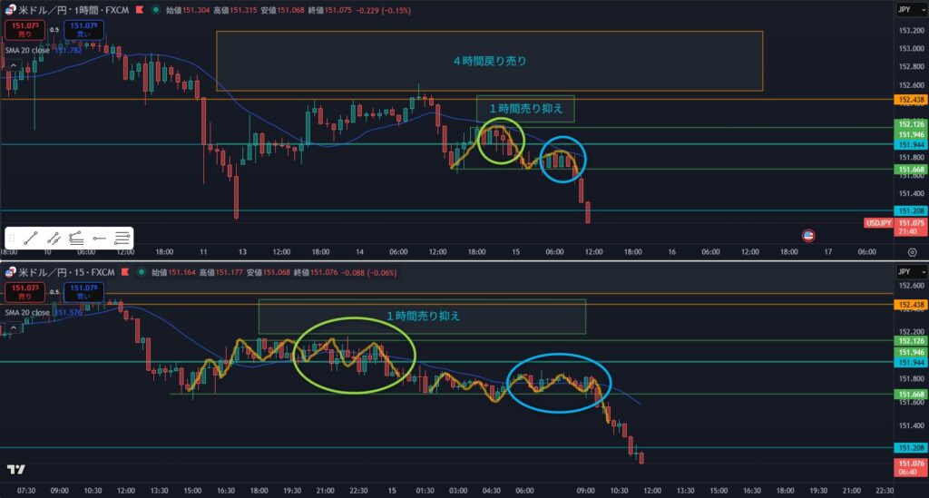 - 4時間戻り売りを狙って1時間を見る