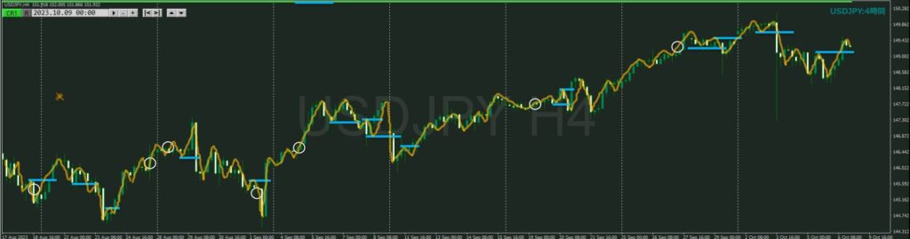 狙い:4時間上昇継続狙いの1時間押し目買い