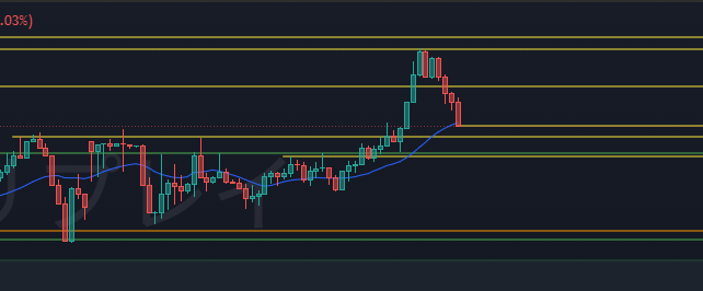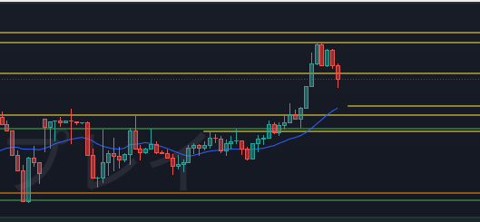 4時間は上昇波の途中で1時間押し目買いのタイミングだが、やはり日足のMAと同じところで何度も止められているのが気にる、ここからのエントリは考えない