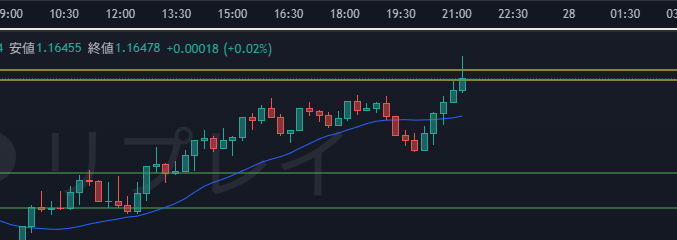 緑線2&MA抜けたかなという所、1時間がここで上を向いたかは半信半疑