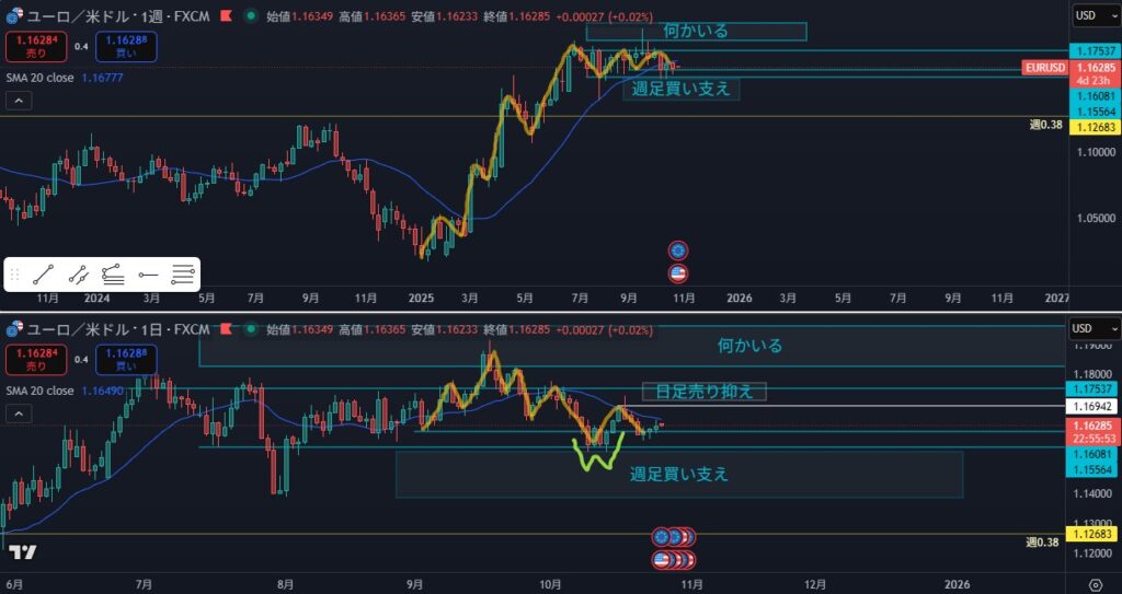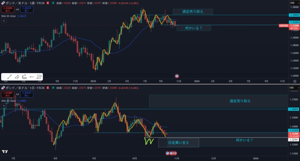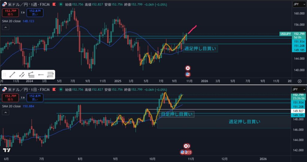 - 週足は上昇波の途中なので買い目線で日足を見る