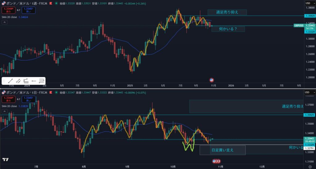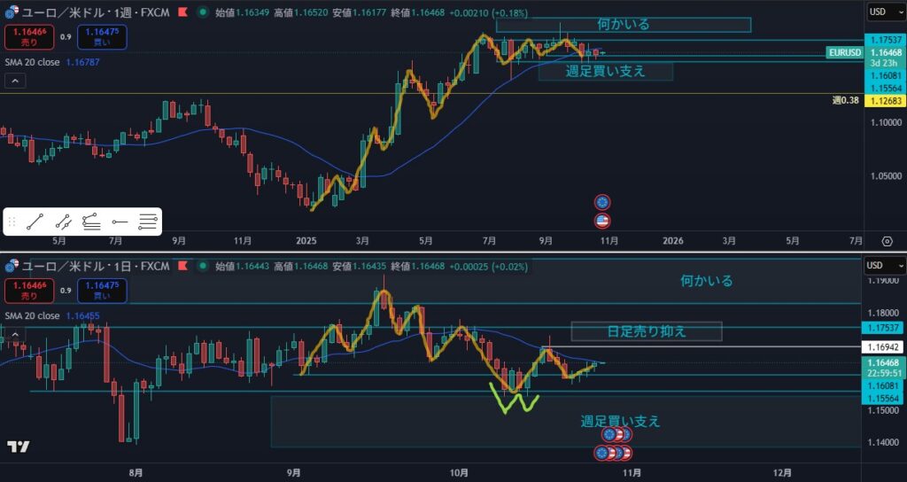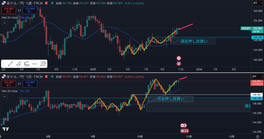 - 週足は上昇波の途中なので買い目線で日足を見る