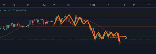 - 黄緑ダウ:安値を作らず、上も抜けてない判定、オレンジライン2が戻り売りポイントになる