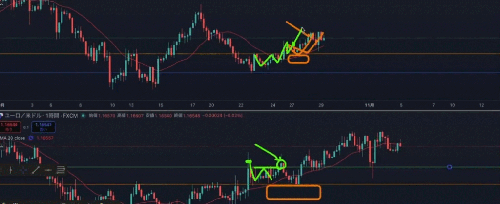 1時間足。エントリーポイントはここ