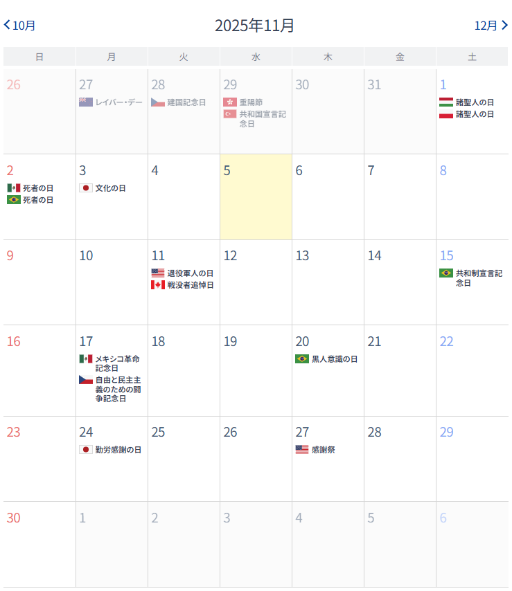 今週の指標・休場
