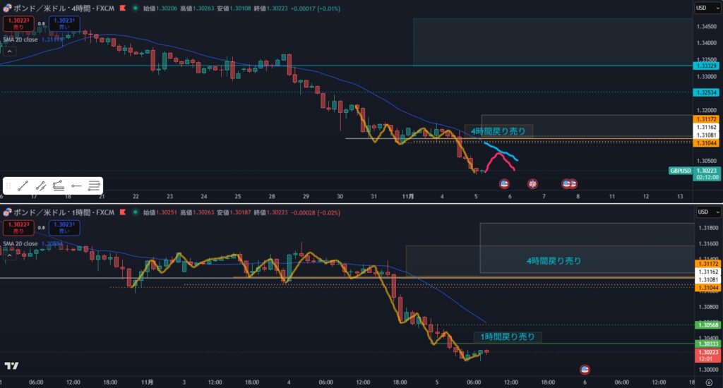 - 4時間での戻り売りは狙えない