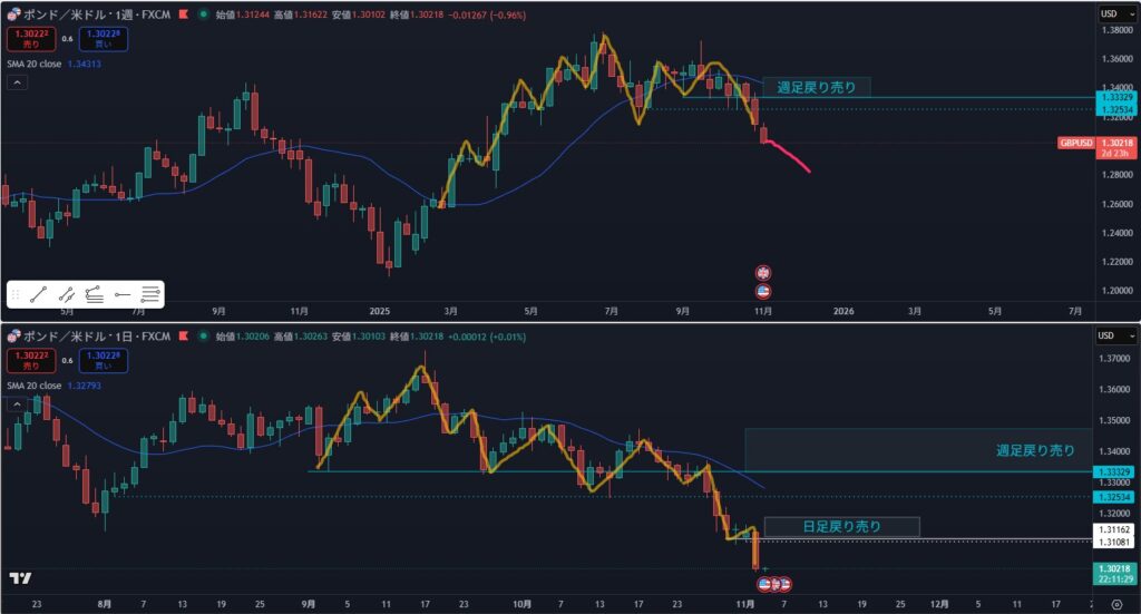 日足 方向下 下落波の途中