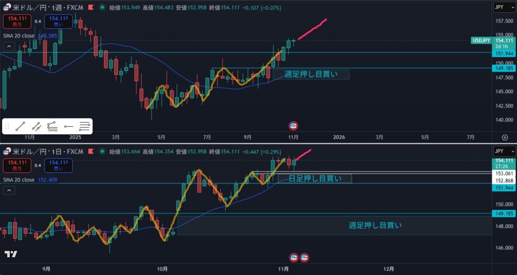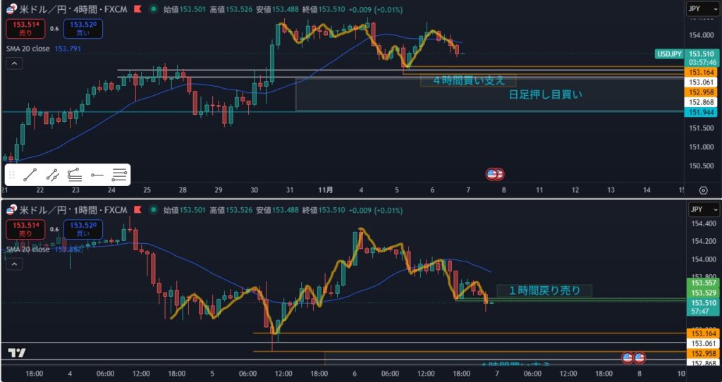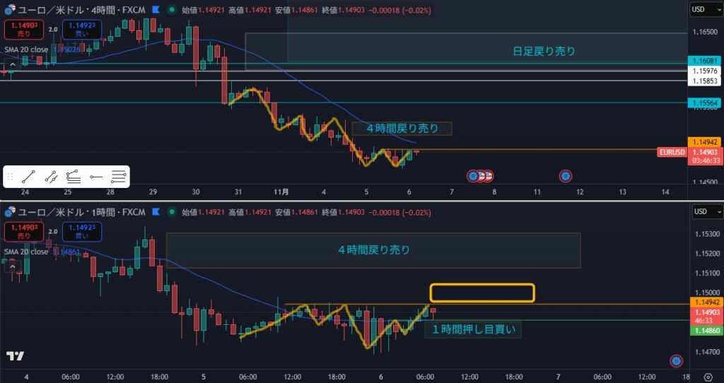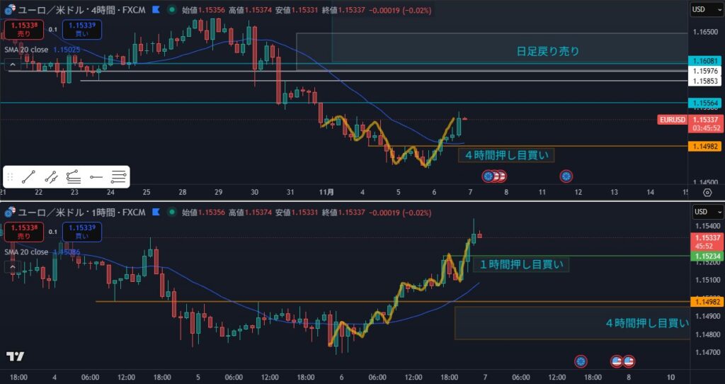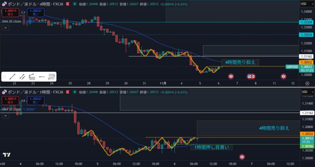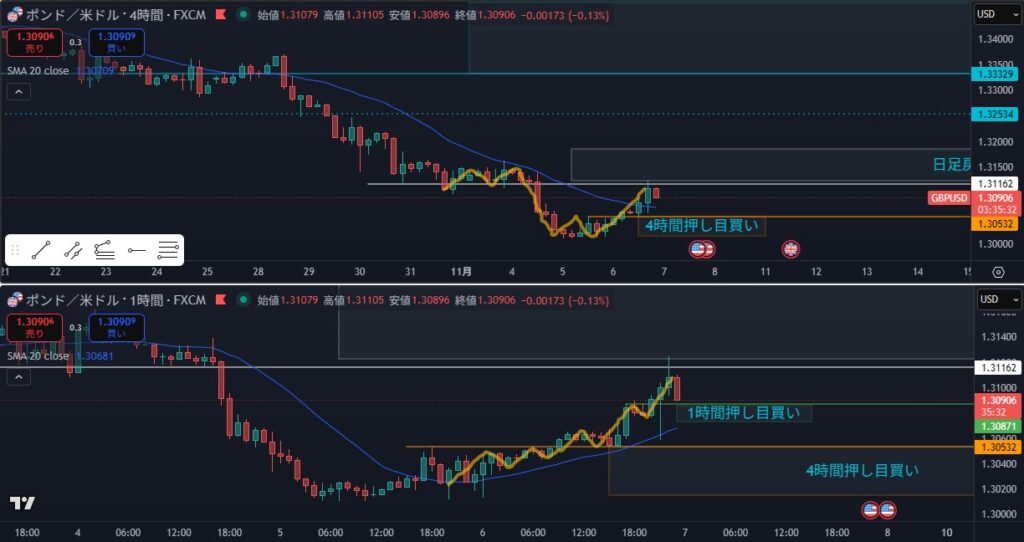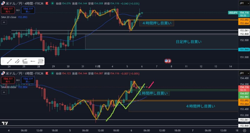 - 4時間売り抑えがあるため、押し目買いは狙えない