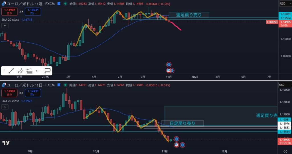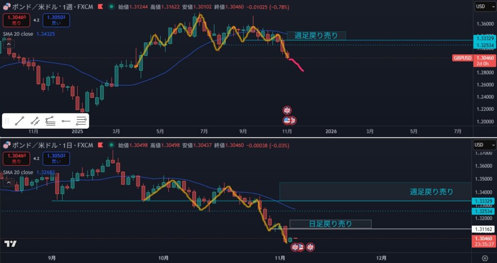 - 養成講座にもあった、ユロドル、ポンドルの水平線の位置