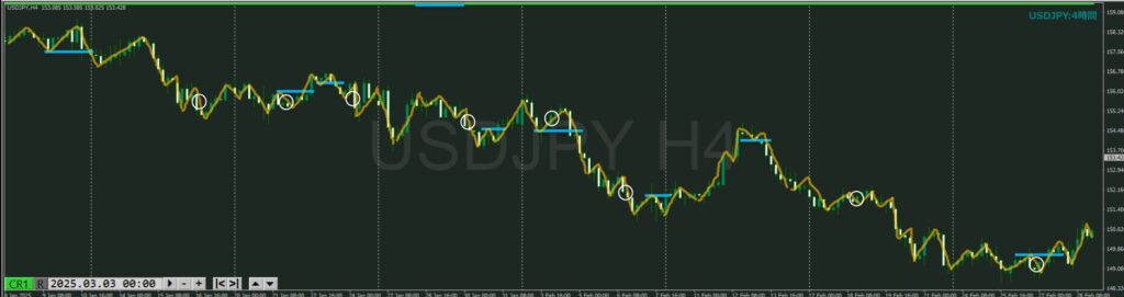 1時間:4時間のラインで止められて、攻防ラインが出来るのを待つ