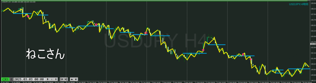 ふむふむ、軸足は4時間だけど、じゃぁどうなったら1時間の波から狙うのかがまだハッキリわかってなかったな。