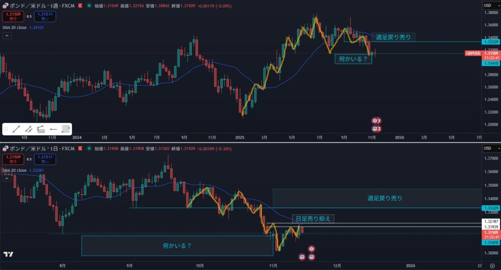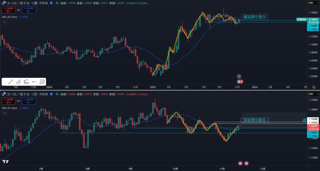 週足の戻り売りエリアが真上なので手が出ない - 金曜日リスク