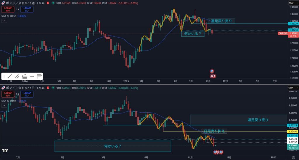 - 戻り売りの位置は白ラインで見ていくが、白点線も気になっている