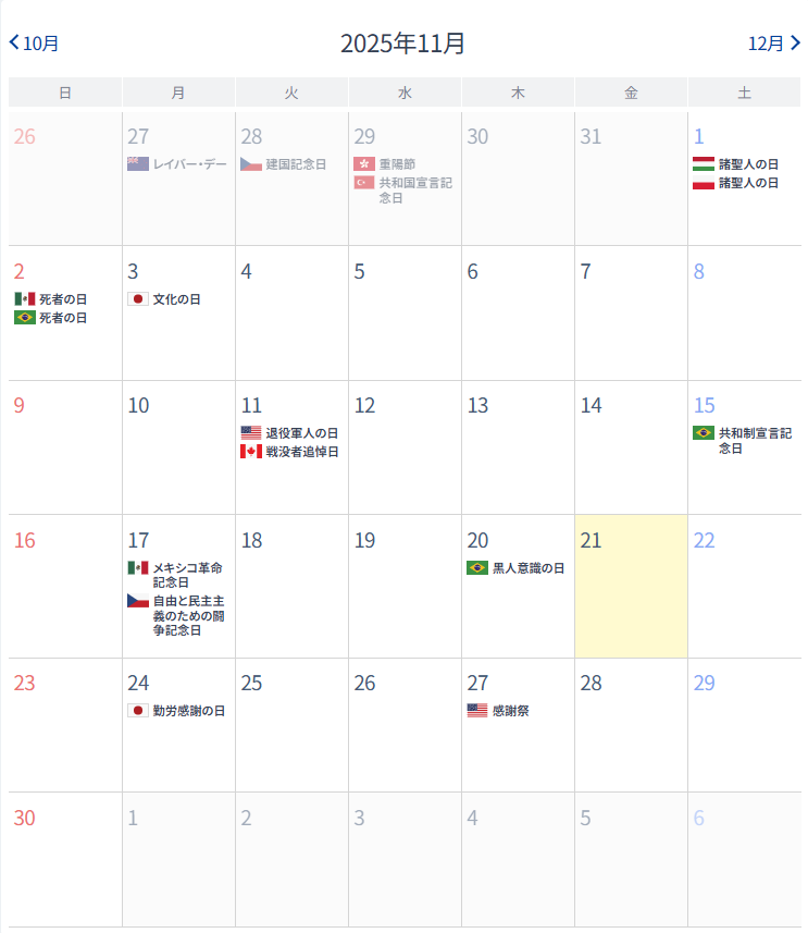 今週の指標・休場