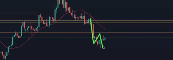 方向は下である、高値はオレンジライン、安値はヒゲ先である。これをダウで書くとこうなるってことだと思う。