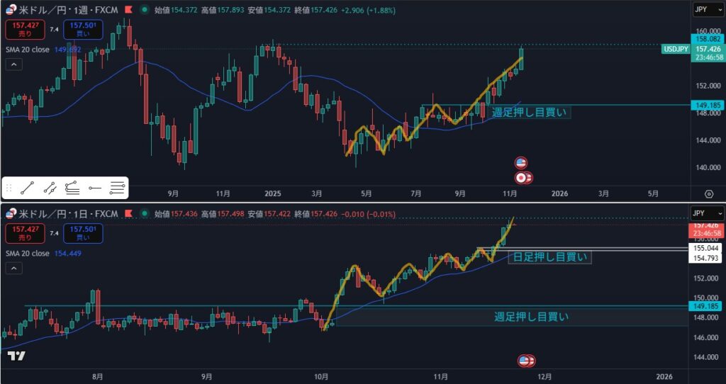 日足 方向上 上昇波の途中