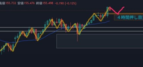 - 今のところ4時間の押し目買いエリアでしっかり止まった場合、何かしらの波は出ると思える。それがさらに高値を越えていくかどうかは、その他のリスク次第だけど。波が出るなら、リスクを考えて到達決済したり、微益微損で終えることが出来ると思う。