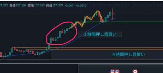 日足の押し目買い&4時間買い支えラインを若干抜けたからといって日足の押し目買い勢力が居なくなったわけじゃない。