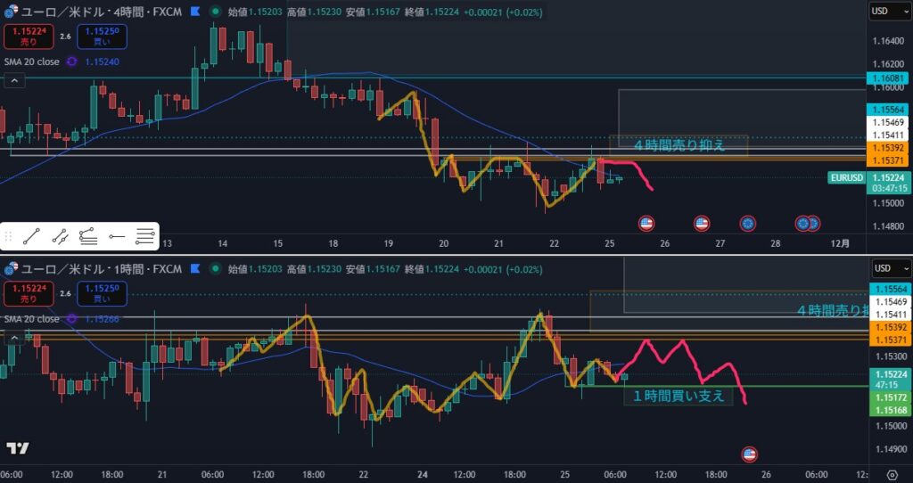 - 戻り売りエリアに押しを付け始めたようにもにえるが、戻り売りとし見るにはもう1本は欲しい
