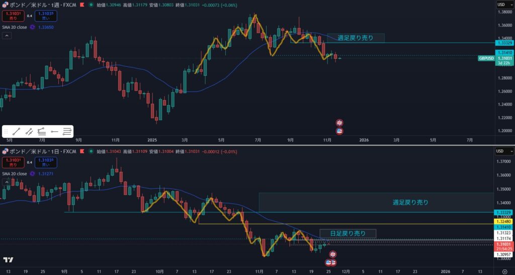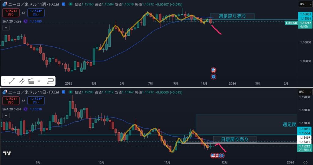 - 日足の戻り売りエリア付近ではあるが、節目がわかりにくい