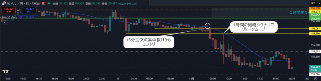 1時間のシグナルラインでリターンムーブを狙うことも可能