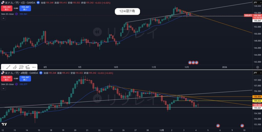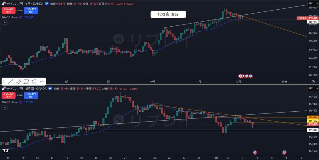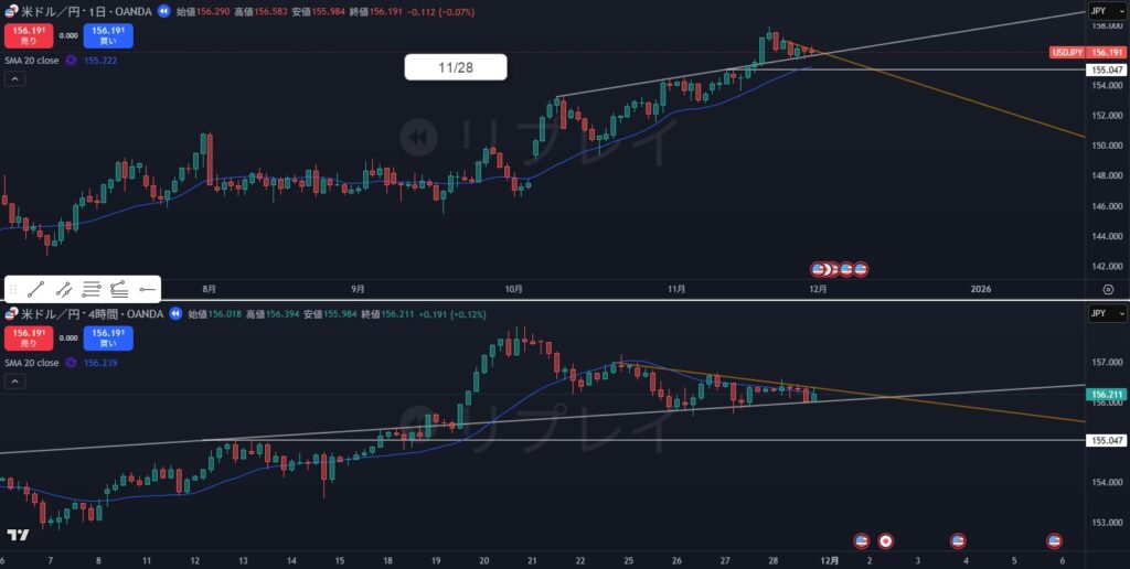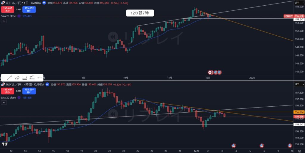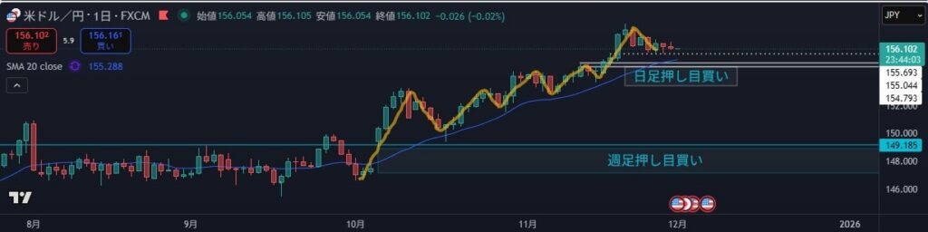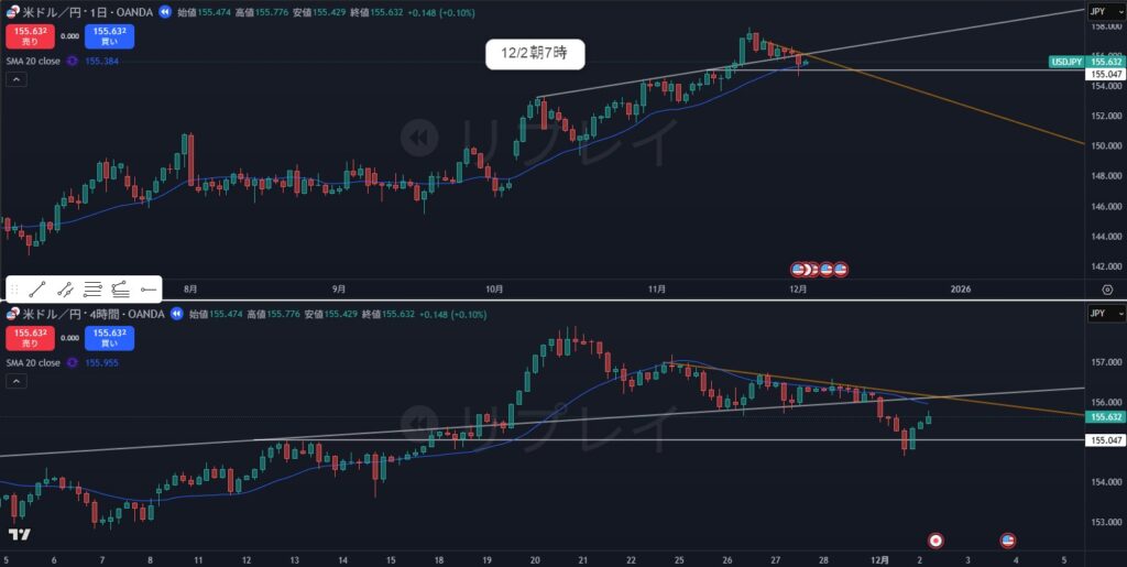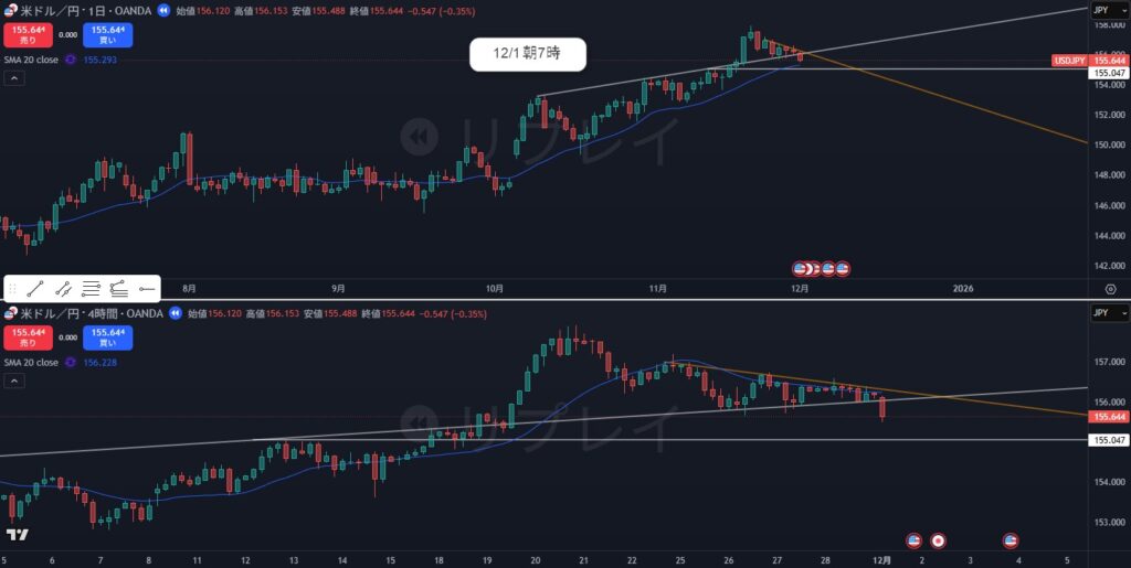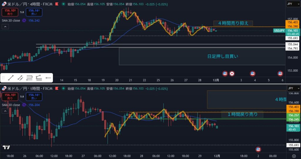 2025/12/01 日足の調整継続を狙った、1時間トレンドフォロー