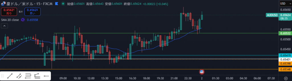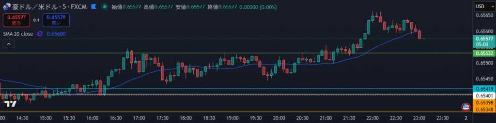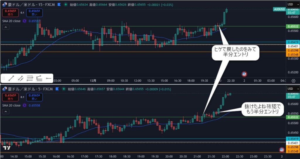 1時間:正直もう一度下を試して、もう少し安い位置からエントリしたかったけど