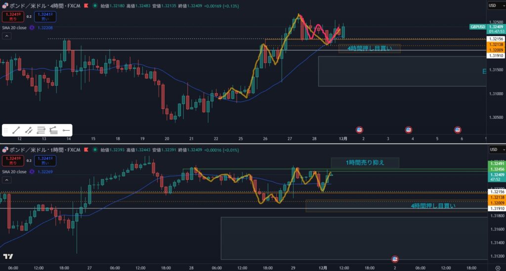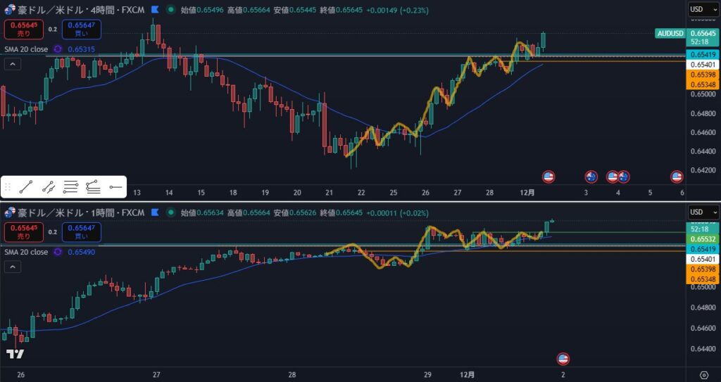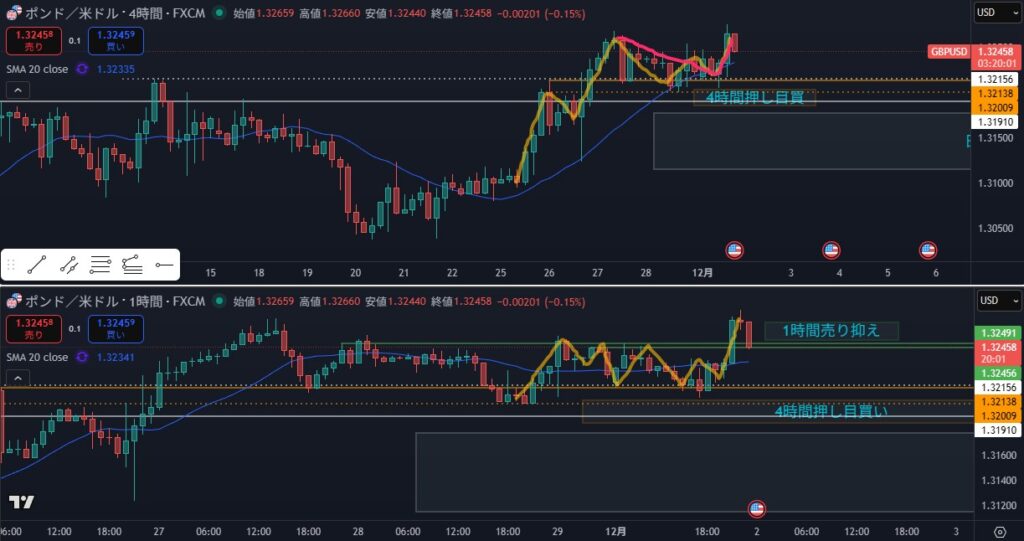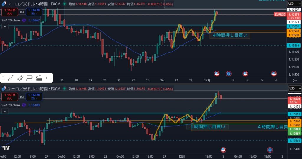 4時間:ユロドル、ポンドルと比べて分かりやすい4時間の押しだと思う