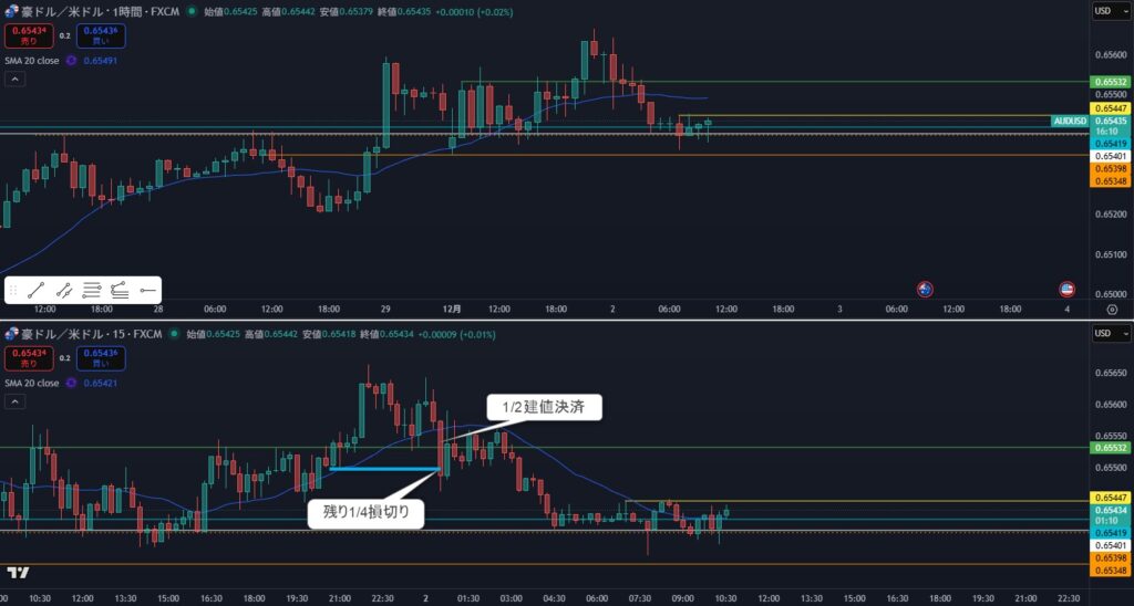 最後の1/4の損切り位置はもう少し考える必要があるなぁ