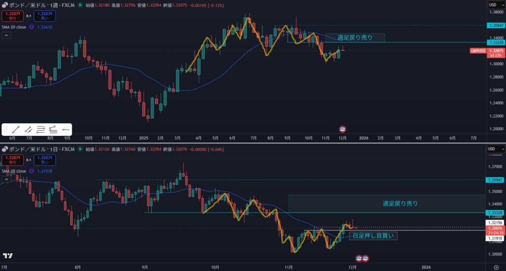 - 日足のエントリポイントまで距離がある