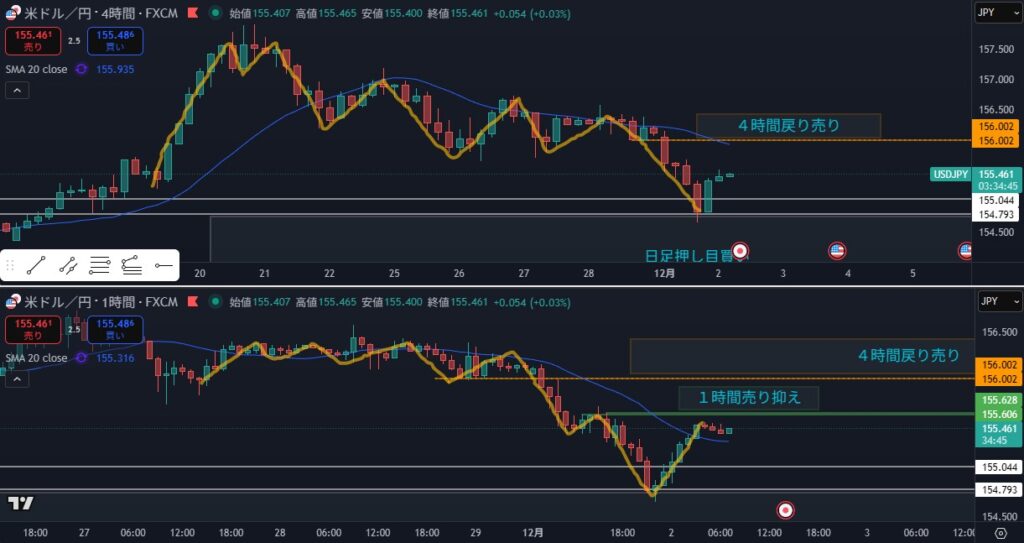 - 狙い:静観、日足の押しになるのか見る