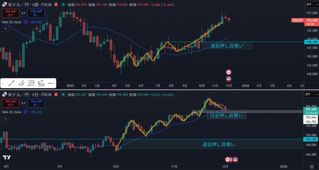 - 日足押し目買いエリアまで押してきた