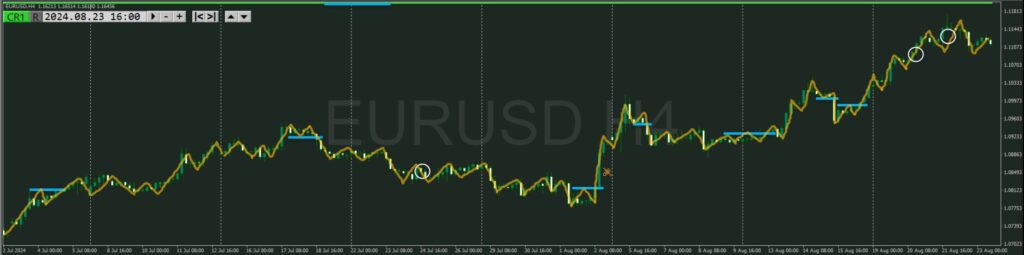 1時間足、速い足をやり過ごした後の「どこおわ」でのエントリが狙いやすく勝率も高い。ここをストライクゾーンに決めるといい。