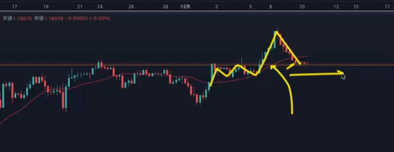 4時間足、4時間の戻り売りが入ったとして、日足の押し目買い勢力がいるので、前回安値まで落ちるとは限らない。そこまでの優位性はない