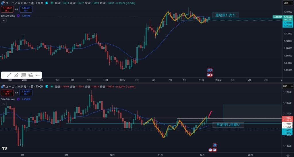 - 戻り売りエリアを越えてきた、週末にかけて戻すのか見ていきたい