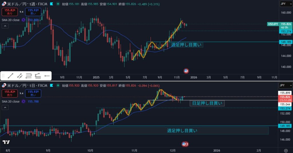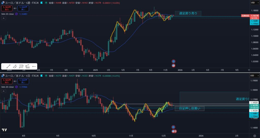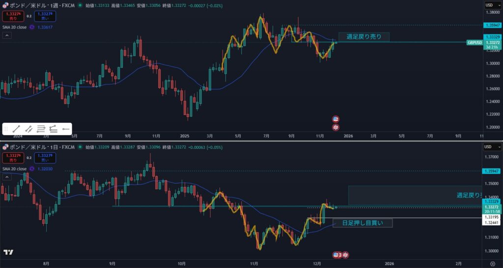 - 買い目線だが依然週足の戻り売りリスクがあるエリア