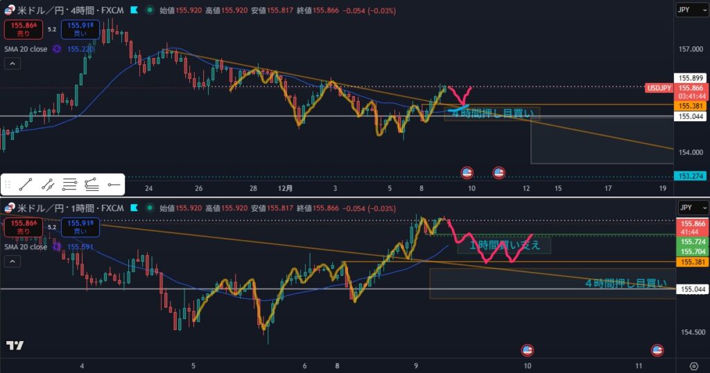 シンプルに4時間の押し目買いを狙いたい感じもする