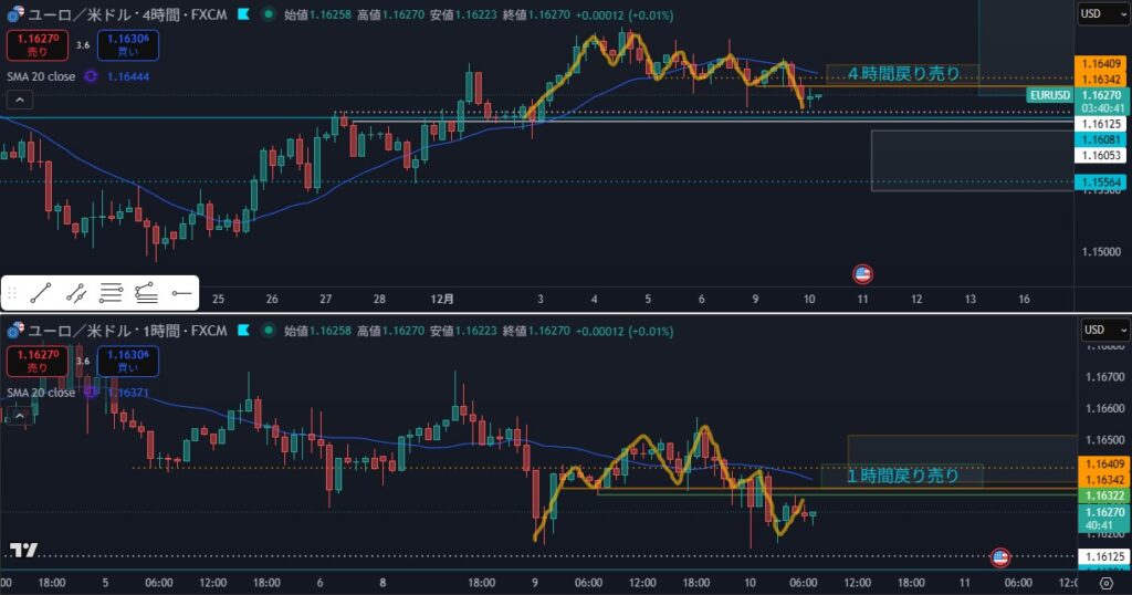 4時間の戻り売りを見てたけど、動くのは夜中のFOMCなのかな