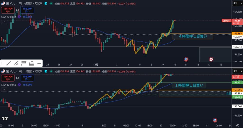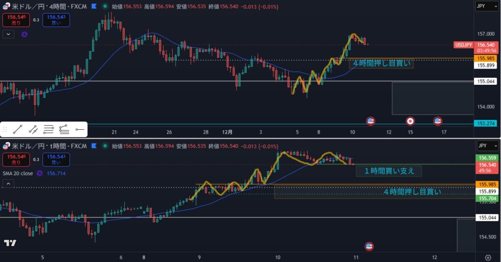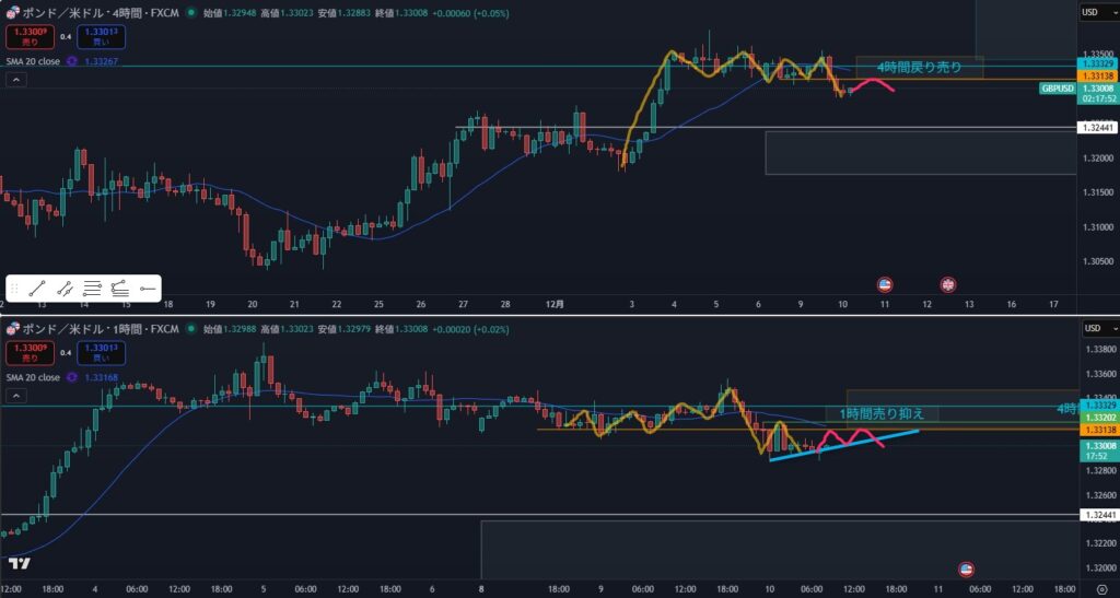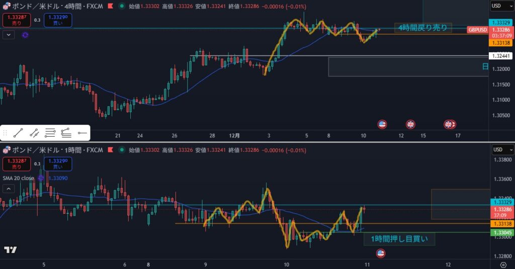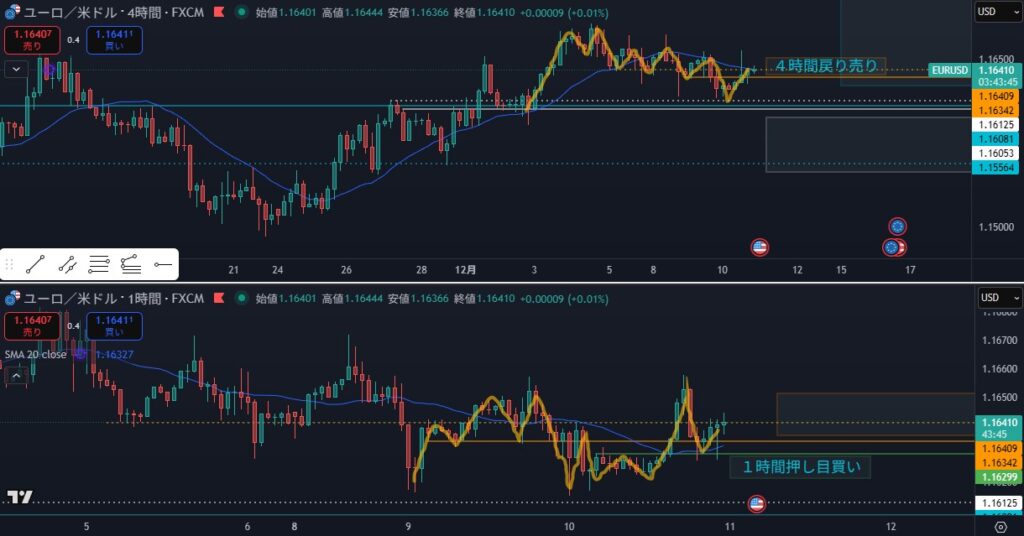 このまま停滞が続けば移動する。 - 4時間の押しがくるのか観察する