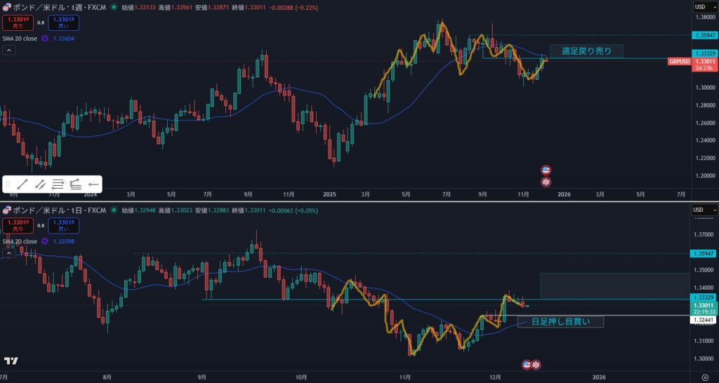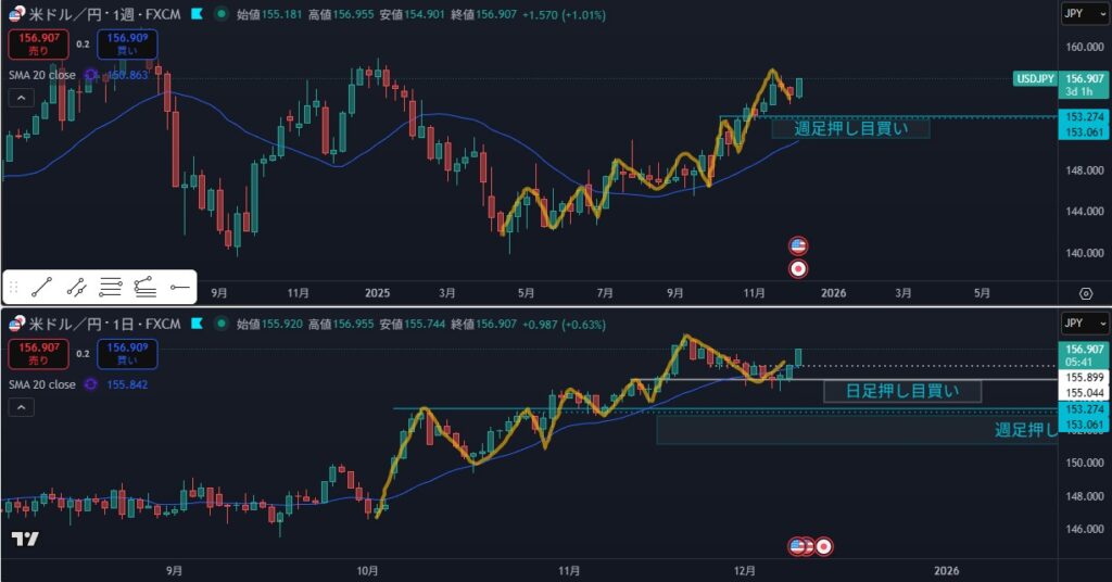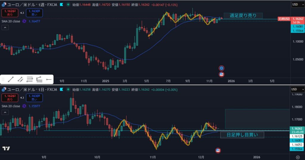 - 日足の押し目買いと4時間、週足の売りが交差する場所。戦争が起きやすい