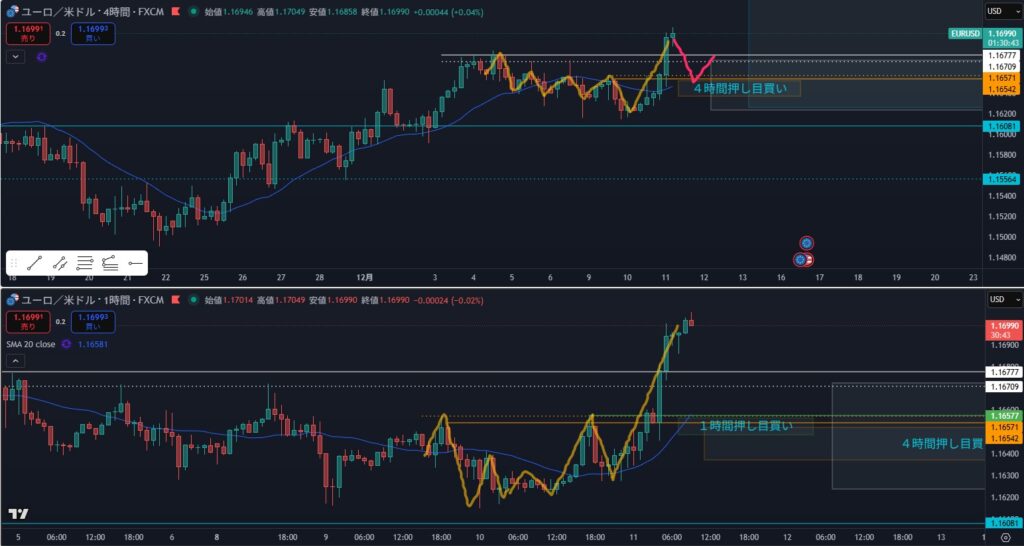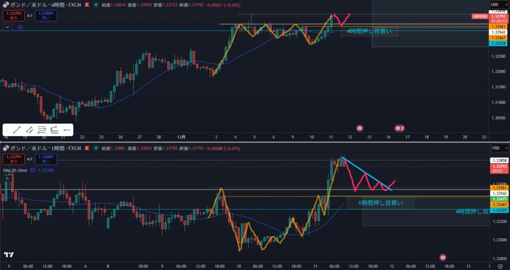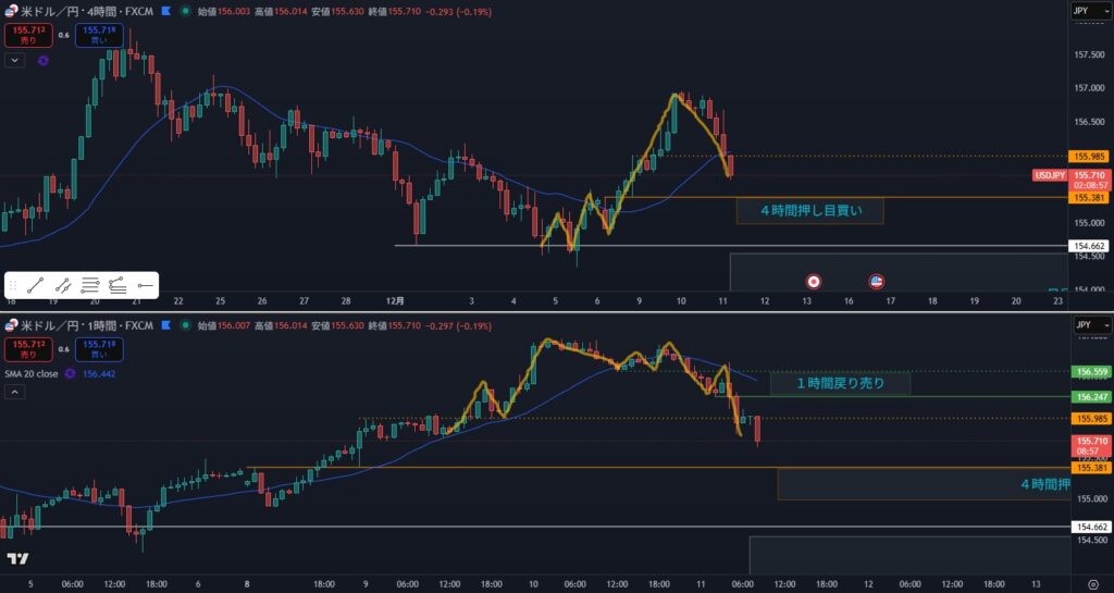 - 4時間の戻しを待つ、攻防ラインを想定する