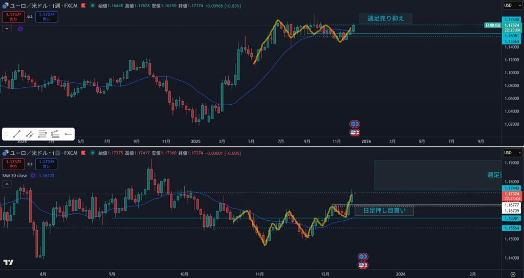 - 押しを付け始めたと見るか微妙なところ、週末まで様子をみたい