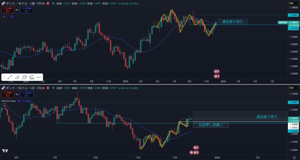 - MAはまだ上向きだが、下抜けしている為方向感がなく見える