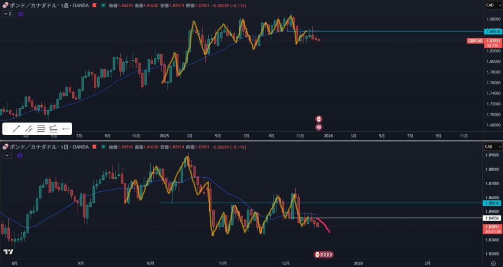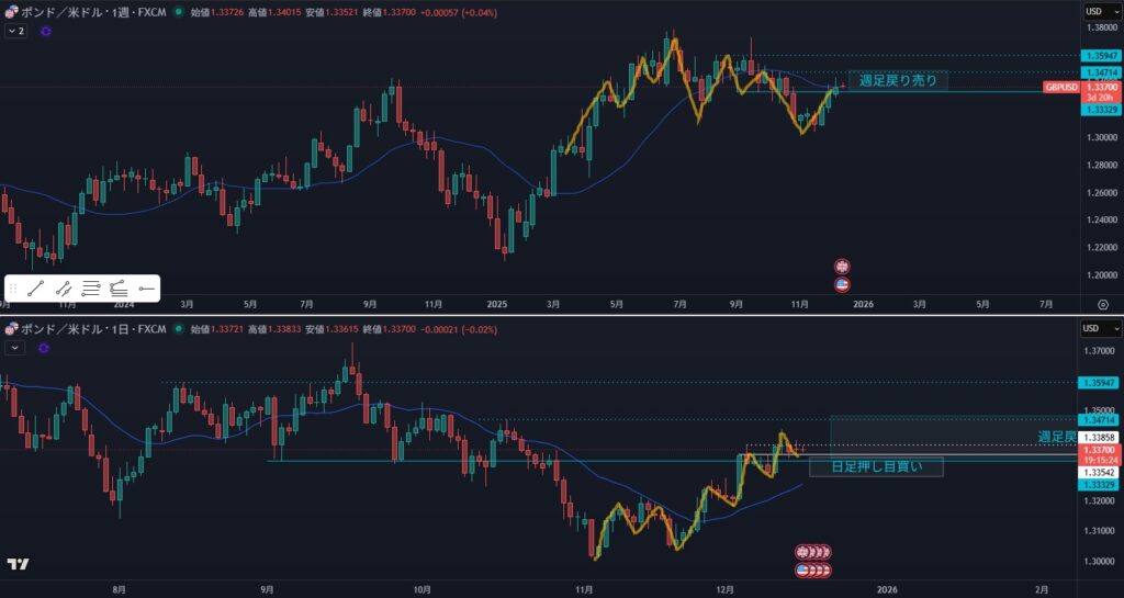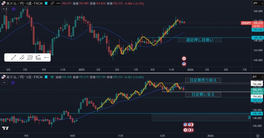 指標で上に抜けるか、日足の押し目になるかどちらかだと思う