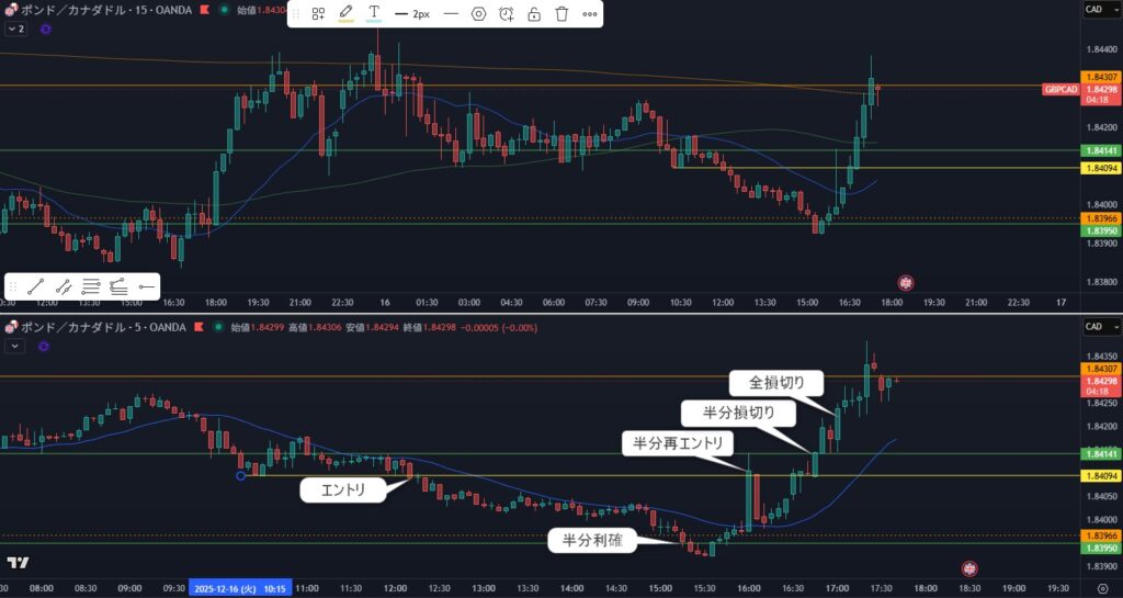 それと、決済はもう少し分割して最後の1/3は15分に1/6、建値に1/6でもいいかも