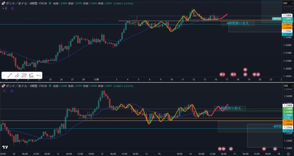 4時間が上を向いた可能性もあるが、ピンクの波で見ていきたい
