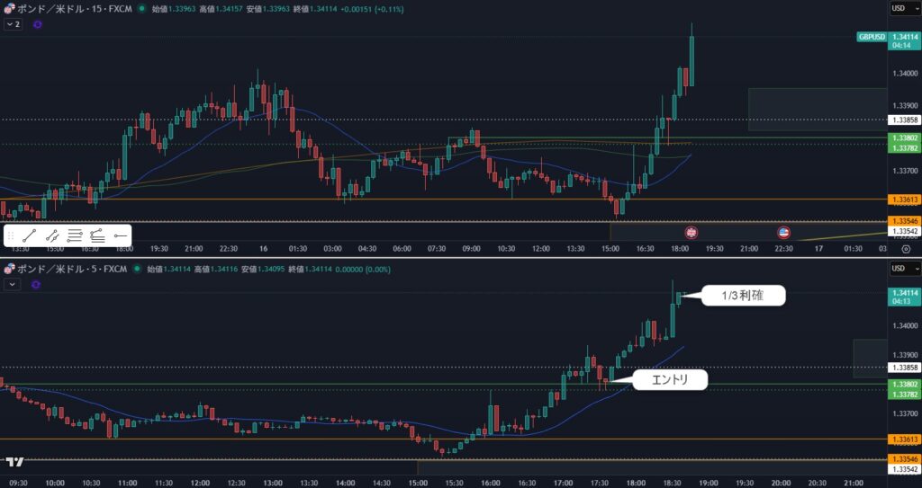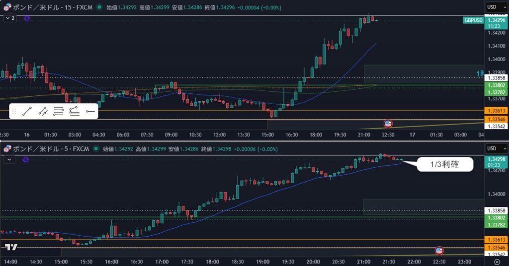 5分が崩れるまでとも思ったけど、あと40分で米雇用統計だと考えると「もうここかな」と思った