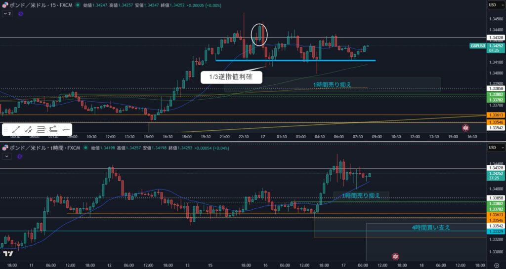 マイナーペアだからどうかなぁ、とは思ったけど、指標まではちゃんとテクニカル通り動いていたと思う。